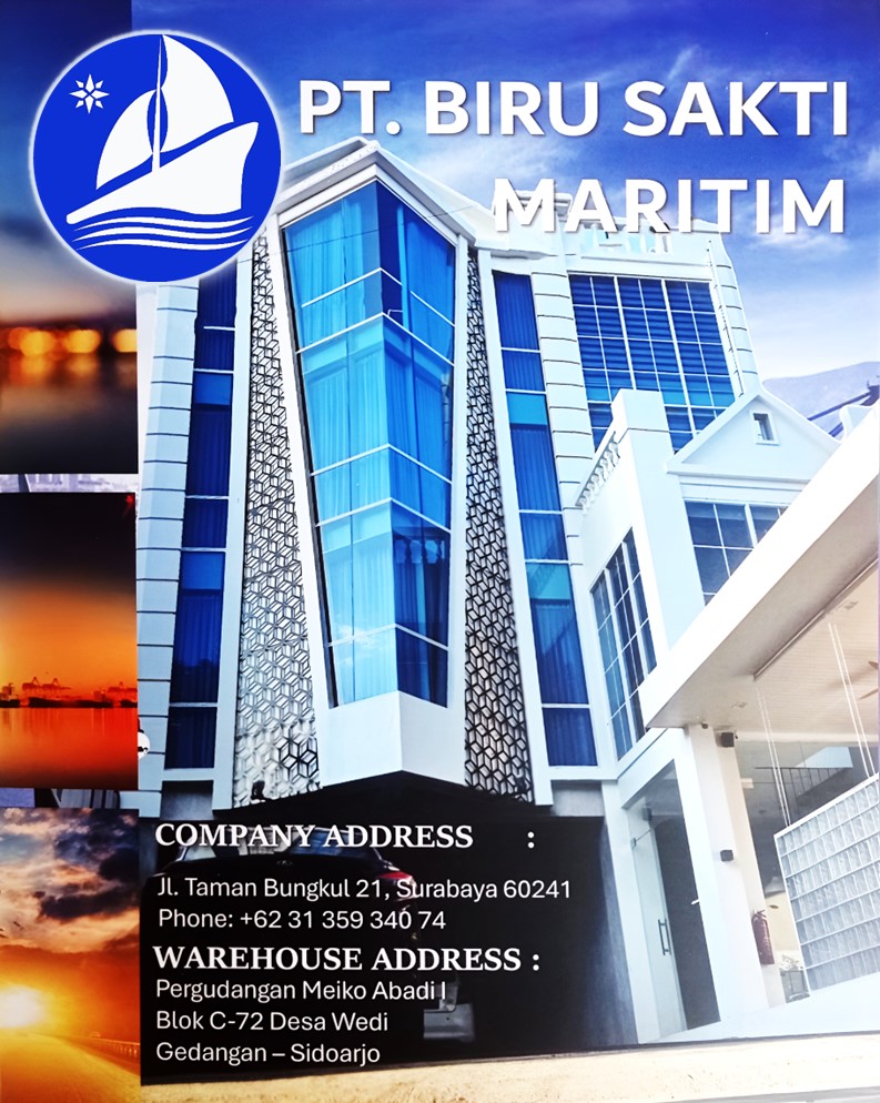 Dear Client and Colleges of PT. BIRU SAKTI MARITIM we are delighted and very pleasant to inform you that we are moving to a new office location as of 27 August 2024. Our new address at Jalan Taman Bungkul number 21, Surabaya. Thanks to wonderful clients like you, we have outgrown our current workplace and have found a more modern space that matches our ambition. We want to reassure you that we have put measures in place to ensure there will be no disruption to the service you receive during this time. This is an important step for the business and a big change for us, so we want to give all of you plenty of notice, though our website.